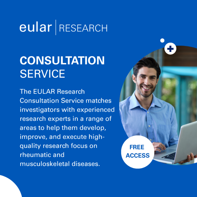 All publications and projects supported by the utilisation of the EULAR Research Consultation Service are required to credit EULAR.