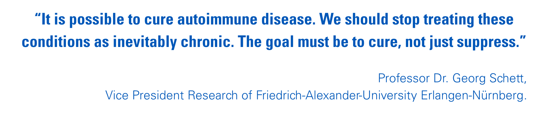 Prof. Georg Schett: Yes — and I want patients to know this. It is possible to cure autoimmune disease. We should stop treating these conditions as inevitably chronic. The goal must be to cure, not just suppress.